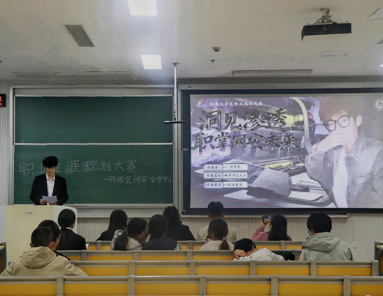 网络空间安全学院讯(通讯员:张晗 杨慧婷 摄影:刘逸坤 朱嘉怡)为深入引导学生树立科学的职业生涯规划理念,提升创新能力与就业竞争力,11月12日14:30,网络空间安全学院大学生职业规划大赛于格物楼B106教室成功举办。学院党委副书记范瑞红,辅导员洪亚玲、张晗,就业实践部部长张馨月担任评委,就业实践部副部长张妍主持比赛。