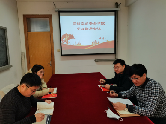 网络空间安全学院院讯(通讯员:丁允念 崔城豪 摄影:姜贵珍)为做好学生卫生安全部署工作,加强舆论的管控工作,12月1日下午,学院召开党政联席会议。党委书记田云飞、院长王茂励、党委副书记范瑞红、副院长马旭参加会议,党委书记田云飞主持会议。