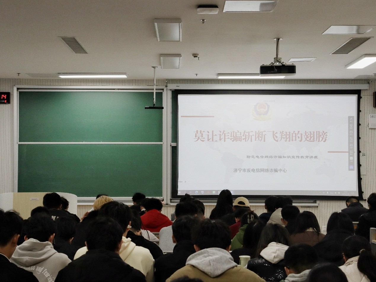 网络空间安全学院院讯(通讯员:赵兴卯 赵玉婷 摄影:杨慧婷)为增强学生安全防范意识,筑牢校园反诈防线,11月9日,校保卫处邀请济宁市反诈中心陈延龙警官和曲阜市公安局孔涛警官来校开展反诈专题培训,网络空间安全学院分会场在格物楼B103、B106参会。辅导员赵兴卯、相青及2023级、2024级、2025级全体舍长参加本次讲座。
